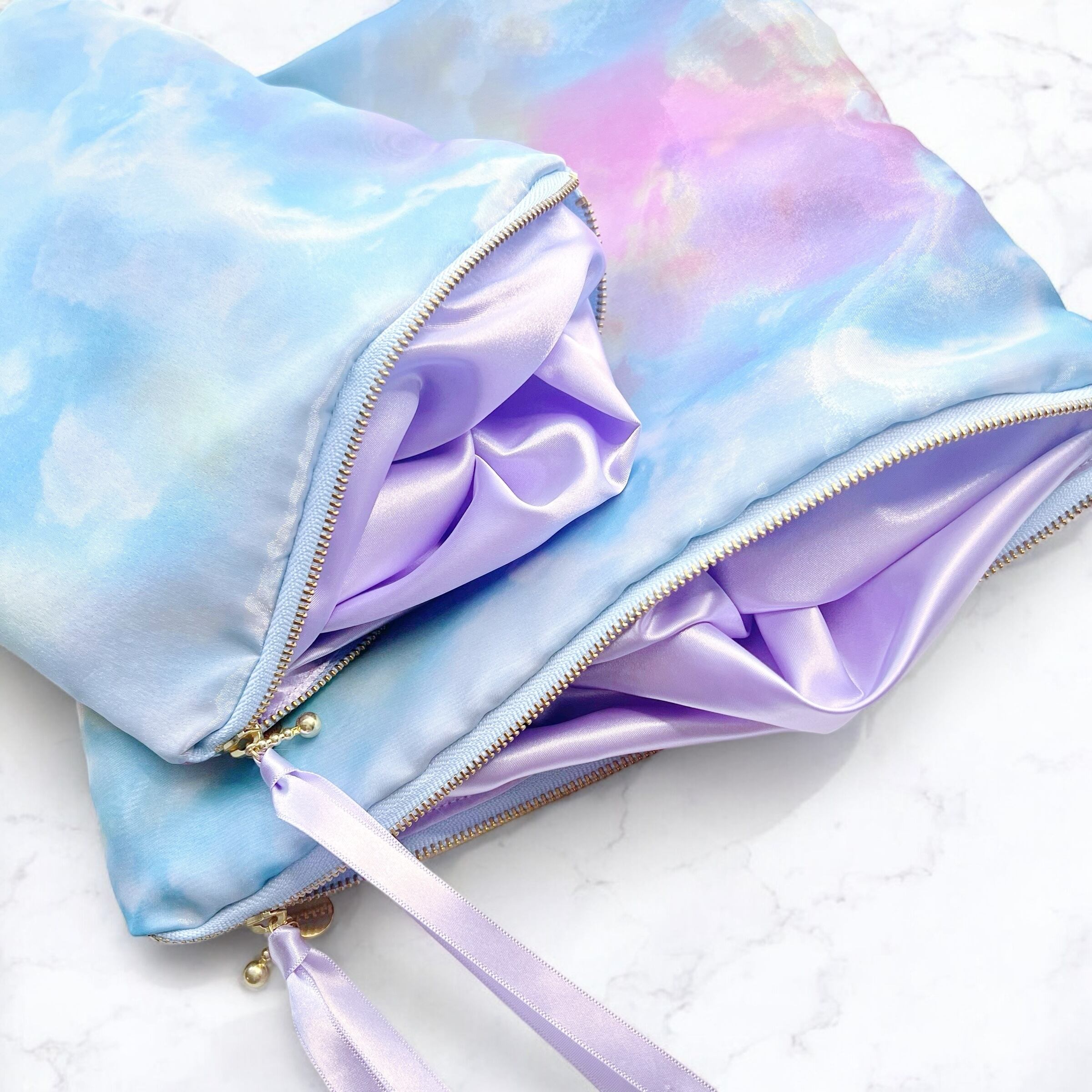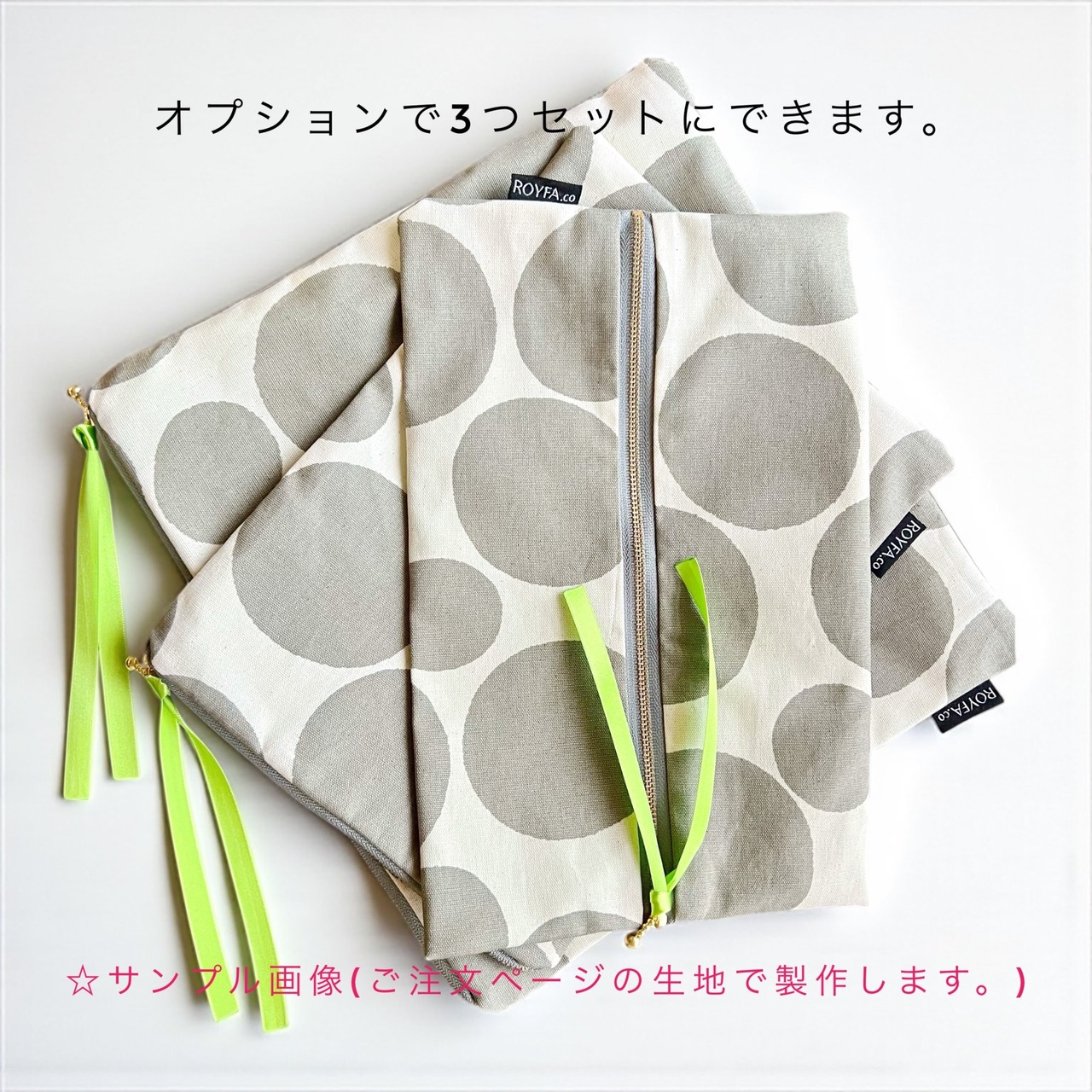 ファスナー部分に、サテンリボンが付いてます。