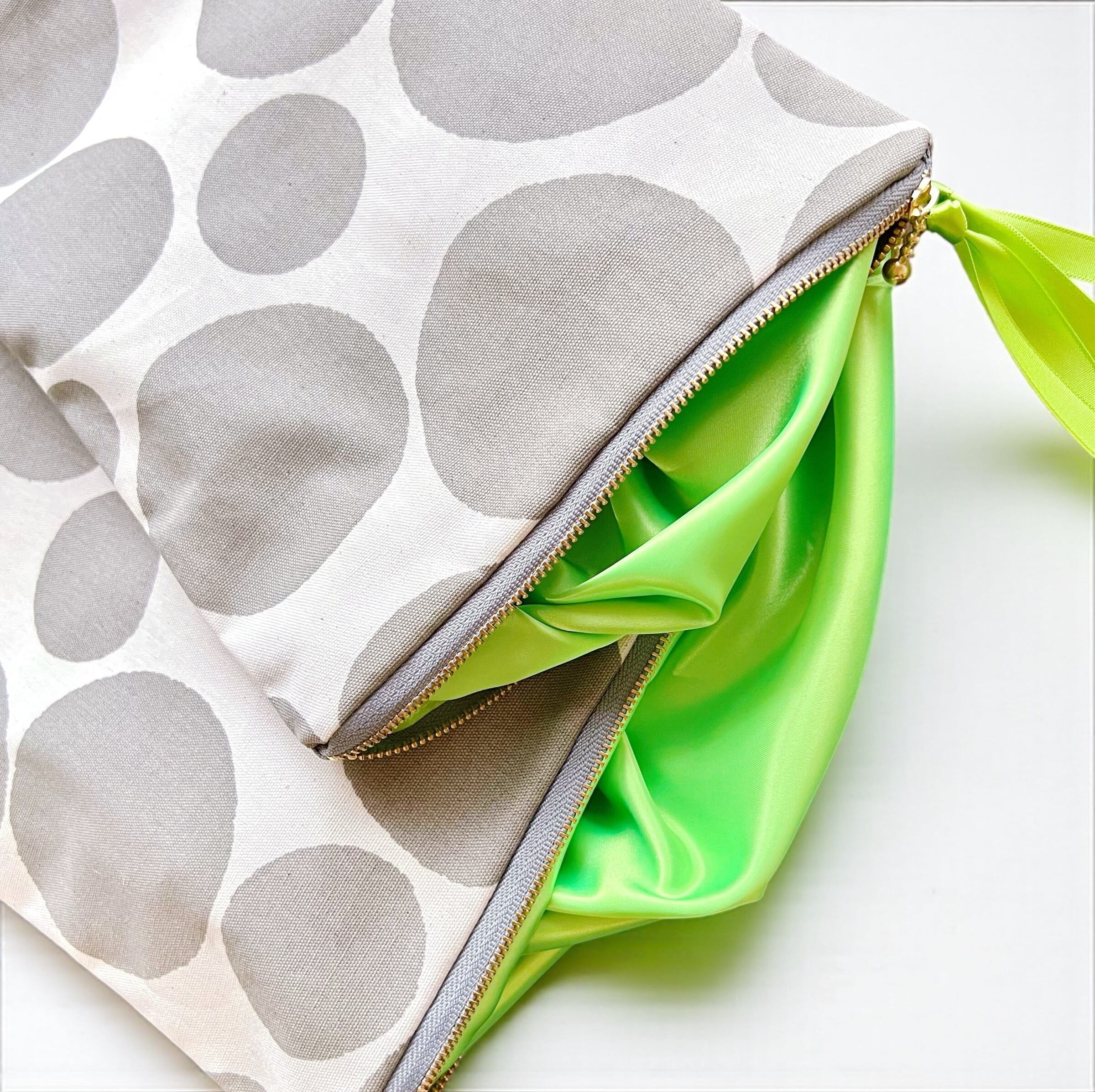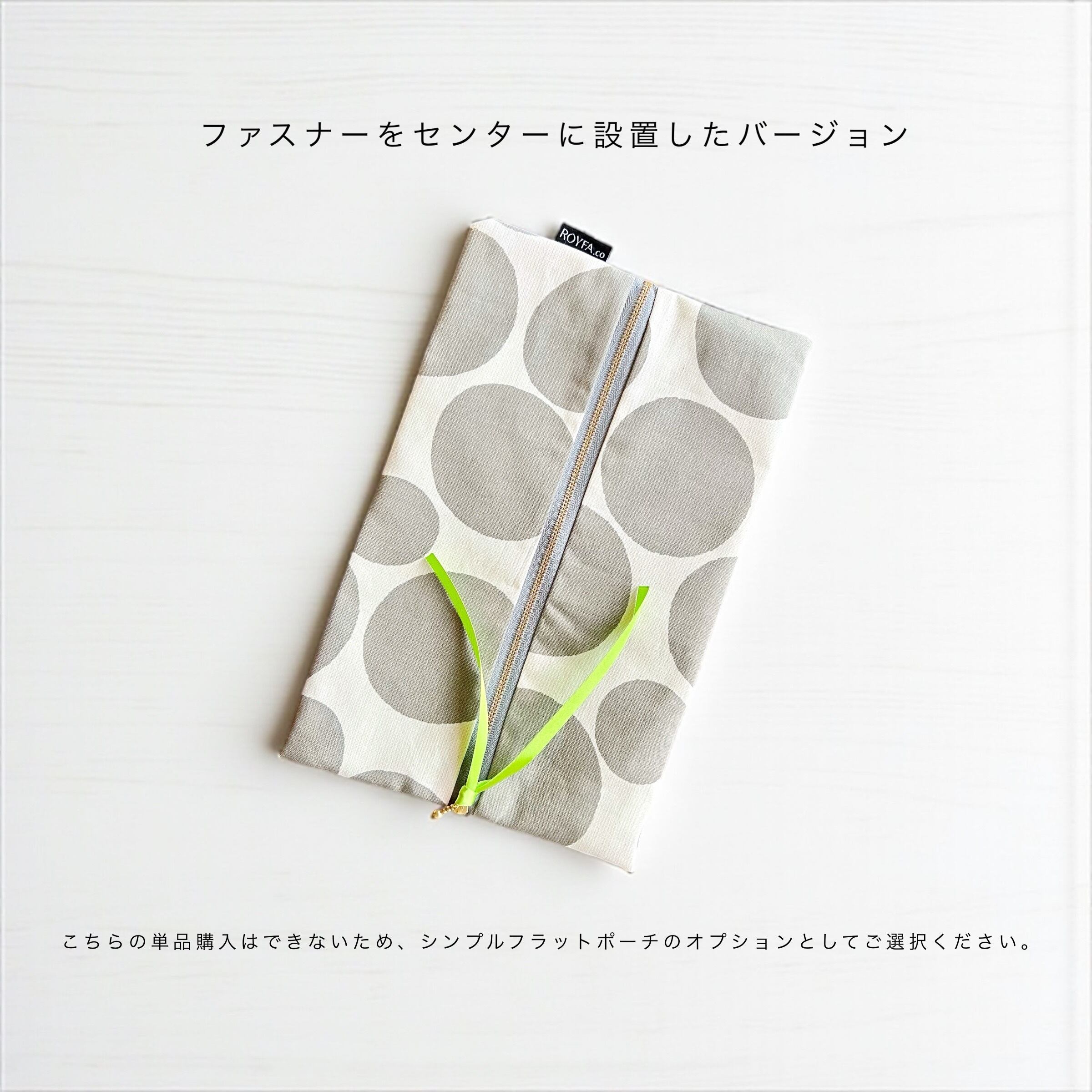 ファスナー部分に、サテンリボンが付いてます。