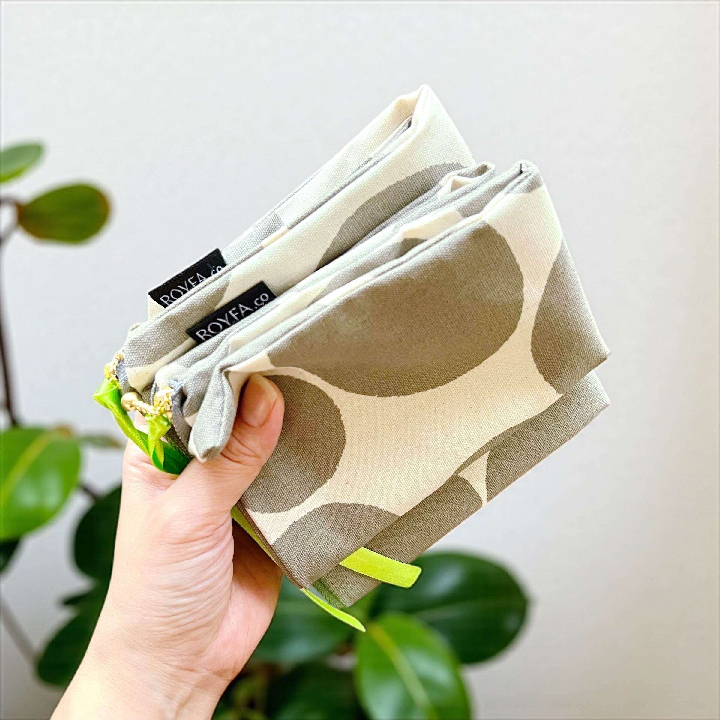 シンプルな大きいポーチと小さいポーチの