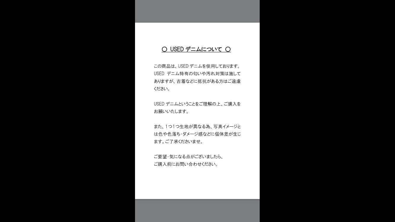 ※USED生地の為、裁断位置により色やダメージの出方に個体差があります。画像はサンプルとなりますので、予めご了承ください。